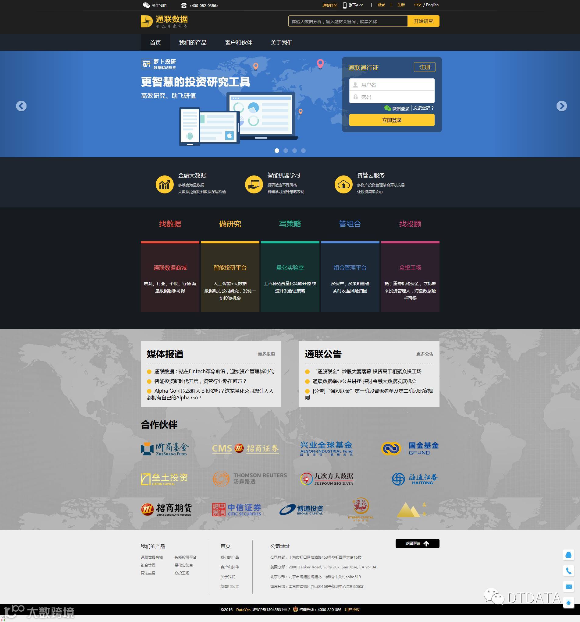 通联数据提供行情、沪深股市/期权、债券、基金、咨询、研究报告等API,适合金融类应用和金融咨询网站、平台的开发者,以及从事金融行业的分析、业务人员。通联数据主要做金融大数据,上千的数据接口可以满足金融行业的大部分需求。