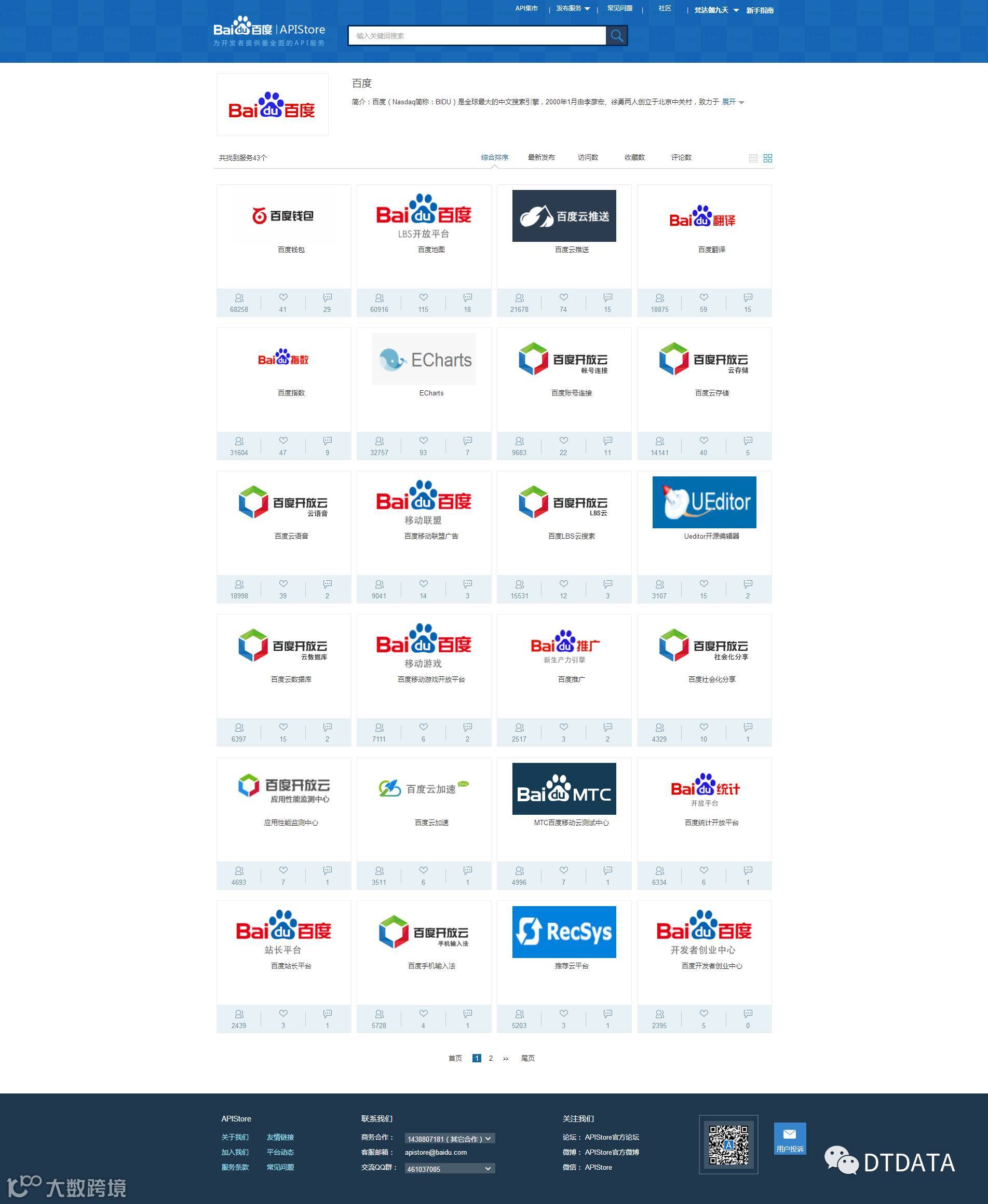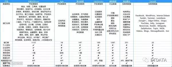 先来科普个概念,开放应用程序的API(即Application Program Interface,应用程序接口)可以让开发者在无需访问源码,或理解内部工作机制细节的情况下,调用他人共享的功能和资源。在数据源的获取上API是个好伙伴。本文将介绍7款API供应平台:百度APIStore、Apix、数说聚合、通联数据、HaoService、聚合数据、datasift (排名不分先后)。