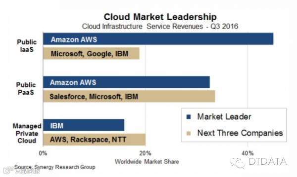 AWS还在PaaS市场处于领先地位,但领先优势不及IaaS市场。