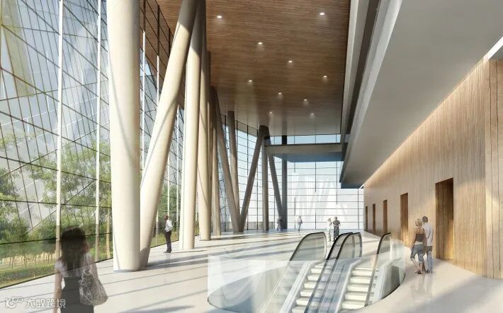 在办公楼的高层区域,设计师减少了塔楼的进深,自然光线可以更好地渗透进办公空间,同时也为办公楼层提供了令人惊叹的城市全景。南立面的条状遮阳系统减少了太阳热量对建筑内部的辐射,提高了能源效率并使得办公室空间更加舒适宜人。