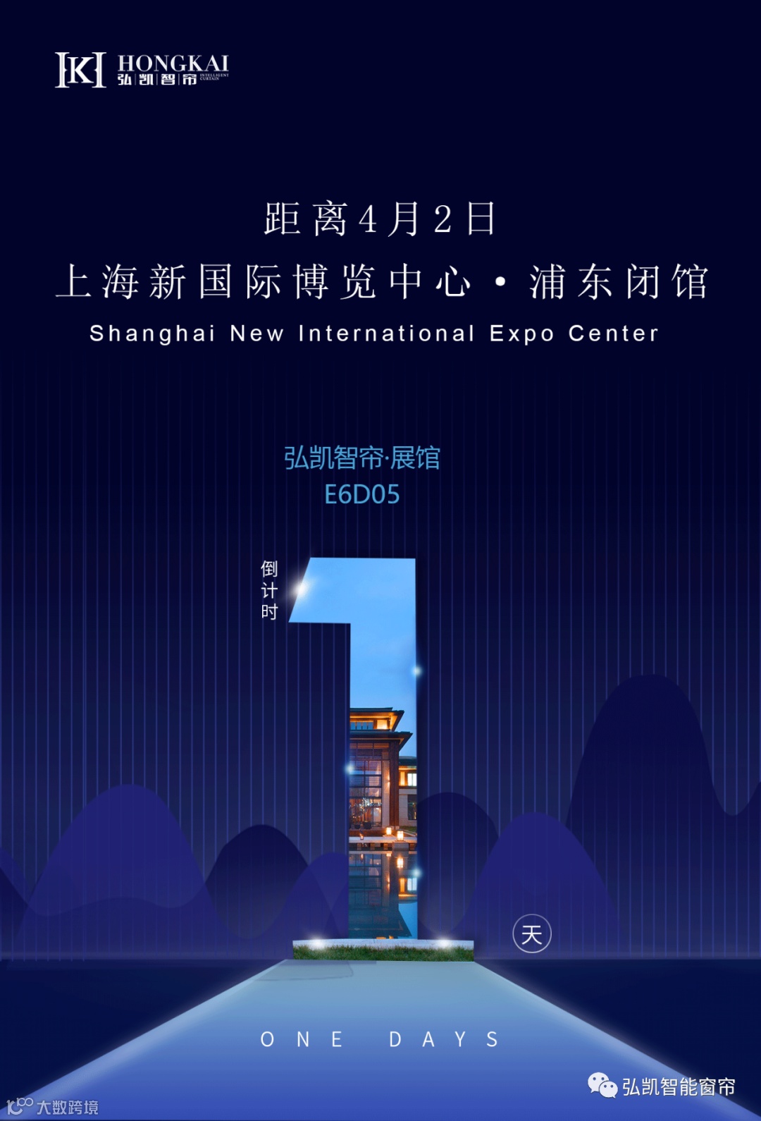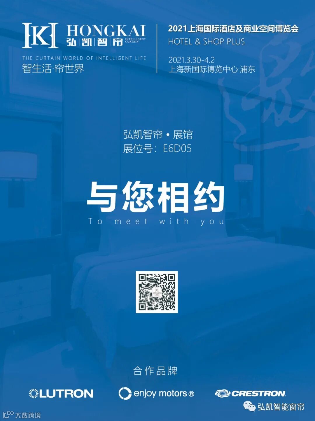 阳春三月,正式大展宏图的季节,弘凯智帘与您相约在2021上海新国际博览中心(HOTEL & SHOP PLUS),距离博览会结束还剩最后1天,弘凯在E6D05与您不见不散。