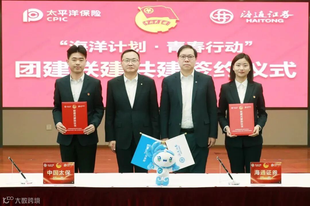 在双方党委领导见证下,中国太保集团团委书记、中青年知联会秘书长洪运,海通证券团委书记唐艺代表双方团委签署了联建共建协议,深圳、广东、北京、四川、浙江、重庆、山西、福建、广西等地的双方团组织负责人也通过线上方式同步签约,全面开启了“海洋联盟”从集团总部层面到各地机构层面深化合作的青春篇章。