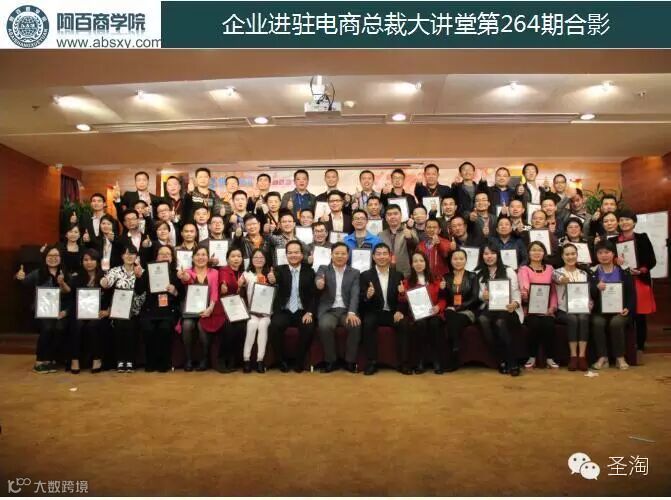 阿百商学院《企业进驻电商总裁大讲堂》第264期课程于2016年3月26、27、28取得圆满成功,课程主要针对传统中小企业操盘电子商务进行专业、系统、全方位培训,有效解决企业转型电商中定位不明确、思维不系统、运营缺经验、团队不健全等核心问题,确保企业操盘电商项目中更加规范有序,实现项目的持久盈利。