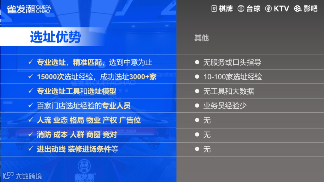 雀发潮具备专业的选址团队、超15000次的丰富选址经验以及专业的选址工具与模型。我们会深入市场、调研城市商圈、人口密度等多维度数据,运用大数据分析与专业评估,为你精准锁定最佳的开店位置。