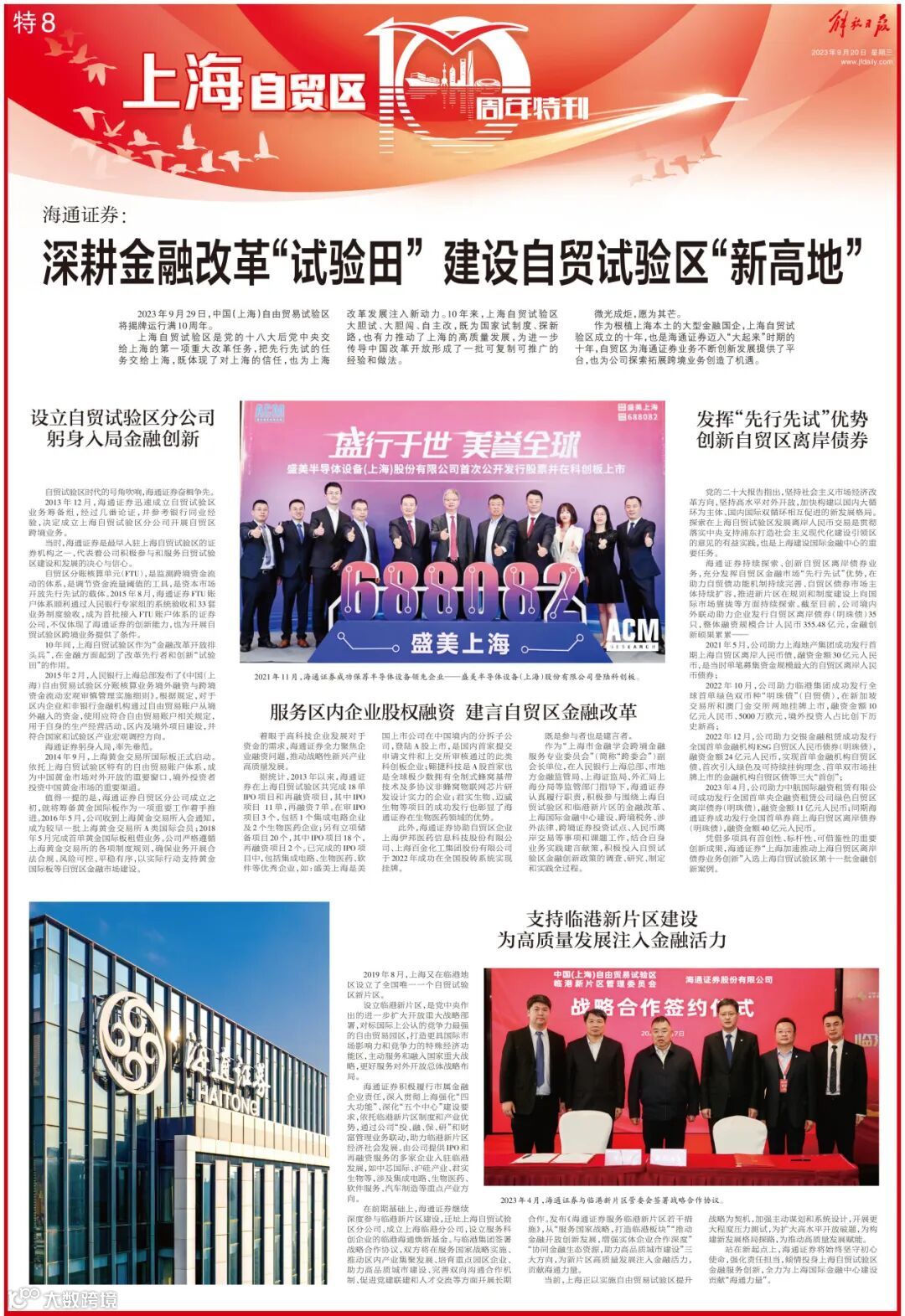 2021年11月,海通证券成功保荐半导体设备领先企业——盛美半导体设备(上海)股份有限公司登陆科创板。