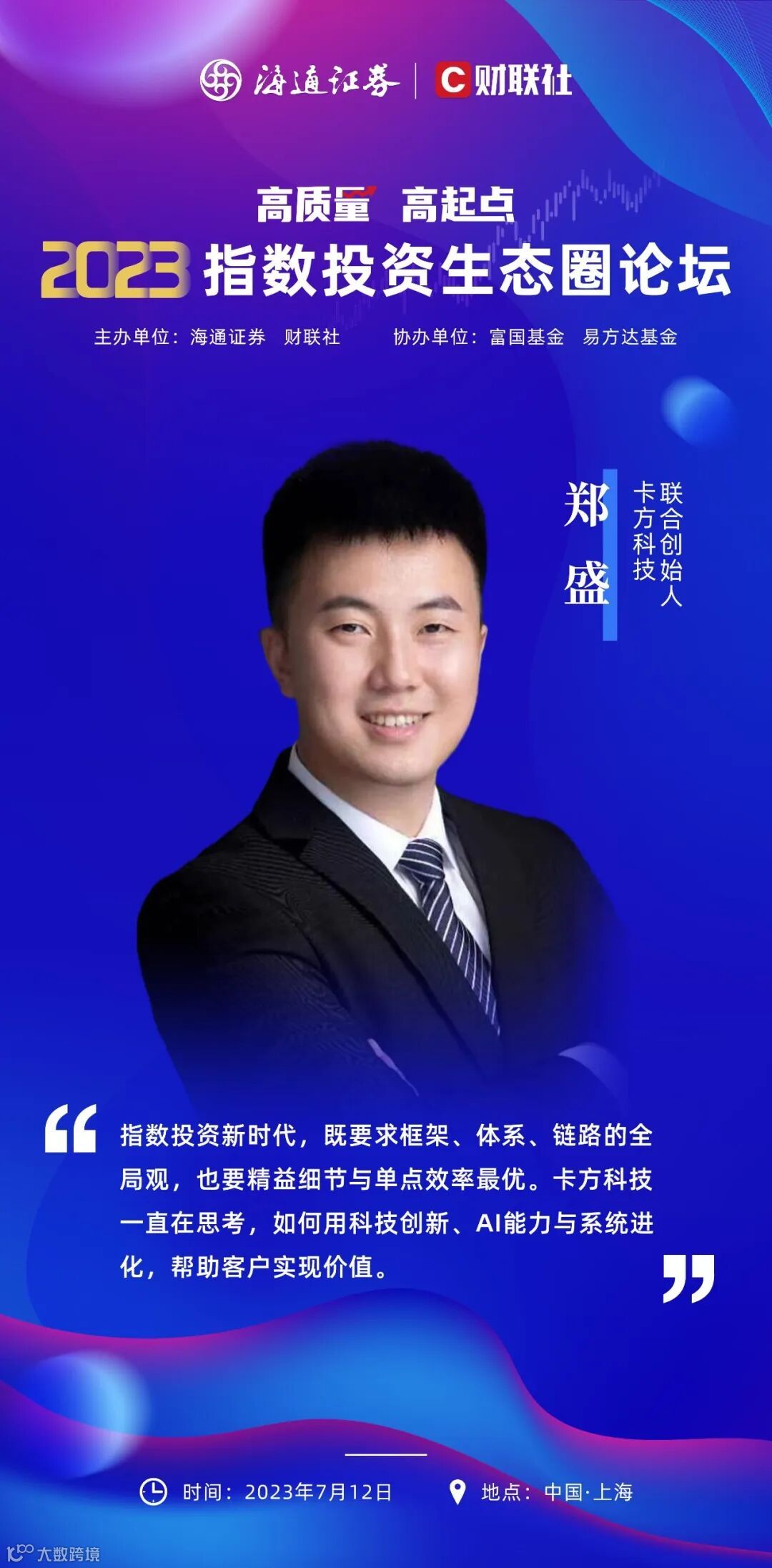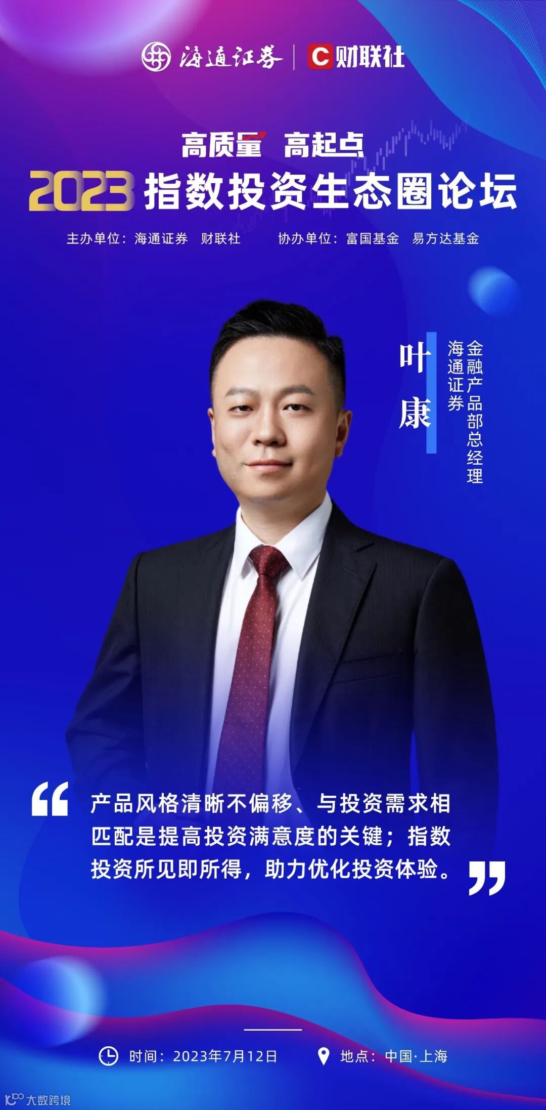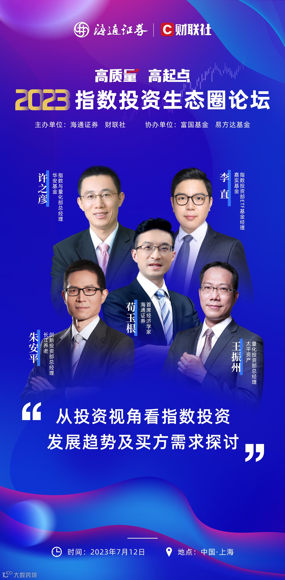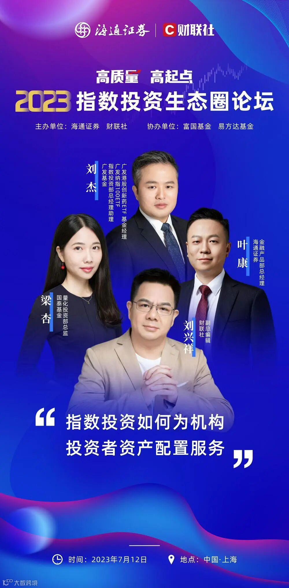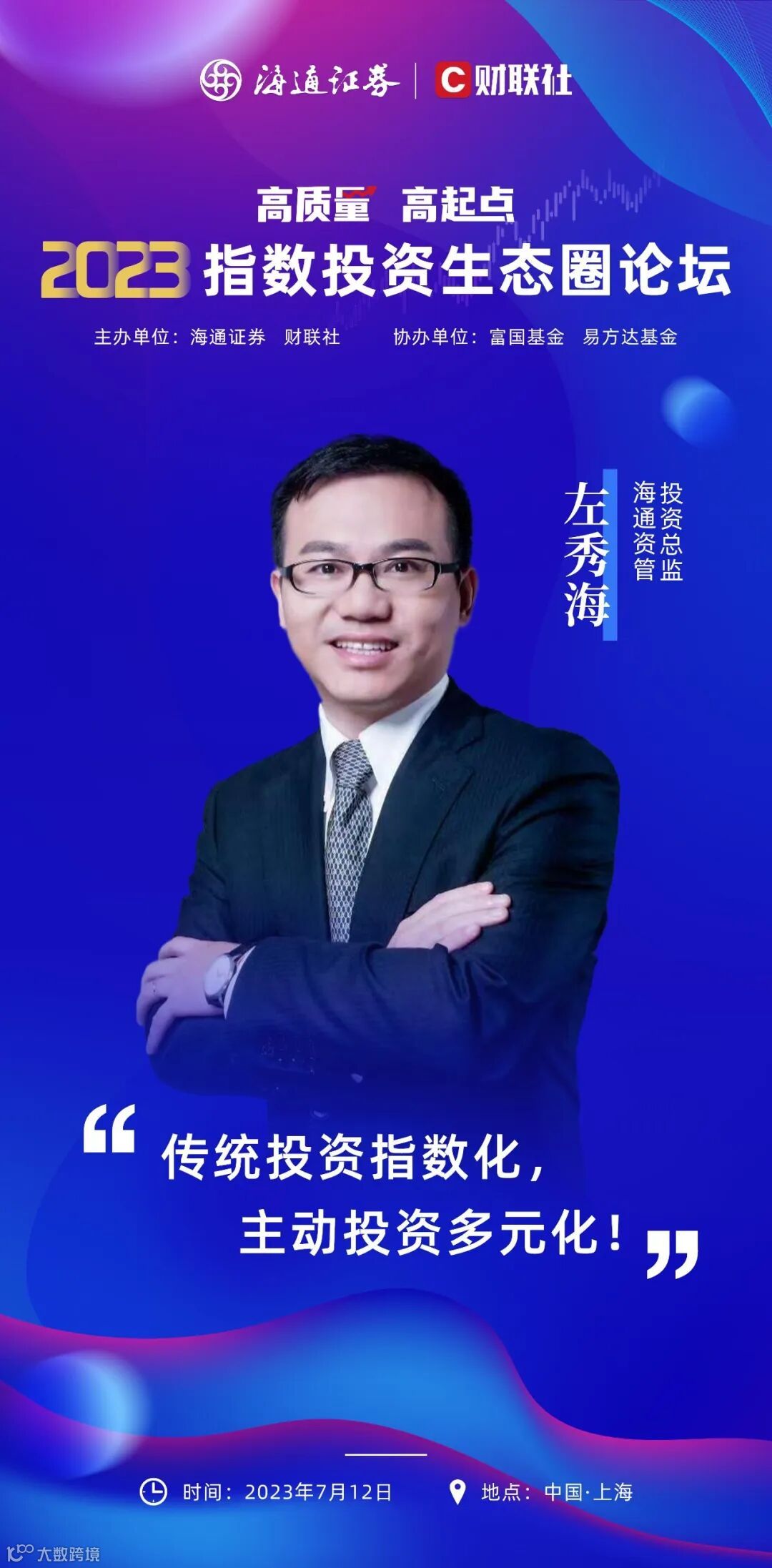 7月12日,由海通证券与财联社共同主办的2023指数投资生态圈论坛即将在上海召开。近300人的核心业务骨干热情参与,高质量分享嘉宾阵容正式亮相,一大波指数基金投资大佬来到前台,共探行业发展趋势。