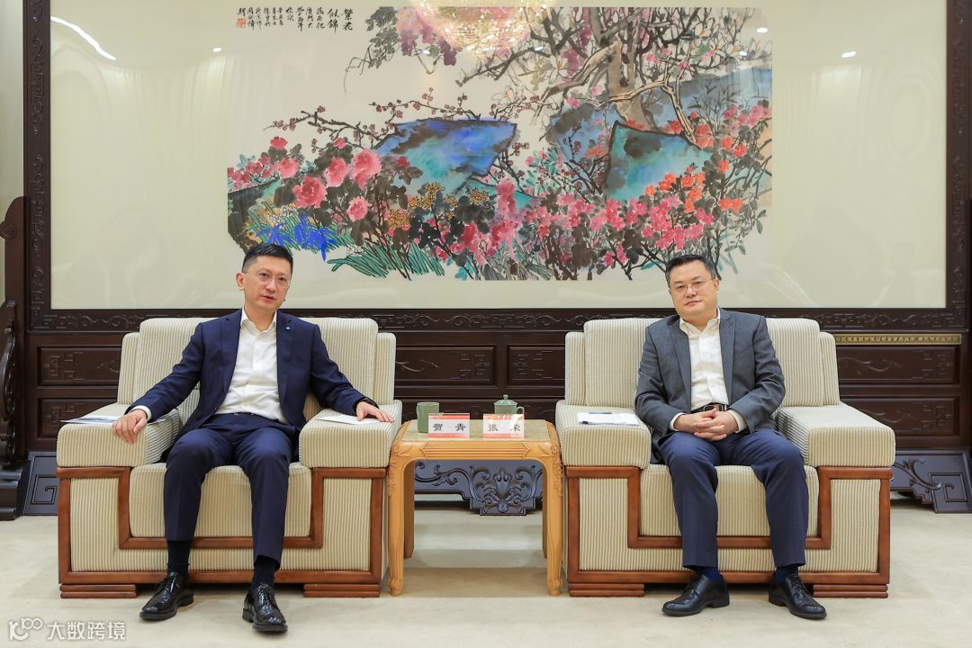 在与国贸控股集团战略合作签约仪式上,贺青与国贸控股集团党委书记、董事长许晓曦,总经理郭聪明共同出席并见证签约;李俊杰、国贸控股集团副总经理高少镛代表双方签署战略合作协议。