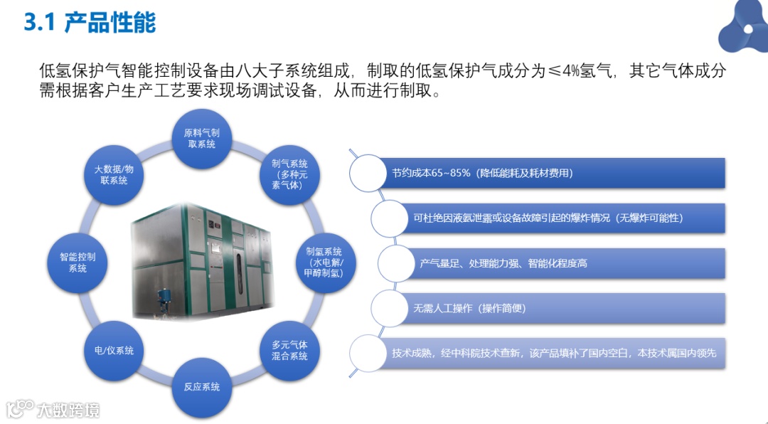 铭钰能源成立于2014年10月,国家高新技术企业,是全国首个研制出替代“氨分解制氢”混合气的节能服务商,研发了低氢保护气设备,是首个引领碳交易解决方案的供应商。管理团队经验十分丰富,深耕节能环保领域三十余年,设有“盐城市工程技术研究中心”和“射阳县工程技术研究中心”。目前,企业全力推出“低氢保护气智能控制设备”项目。