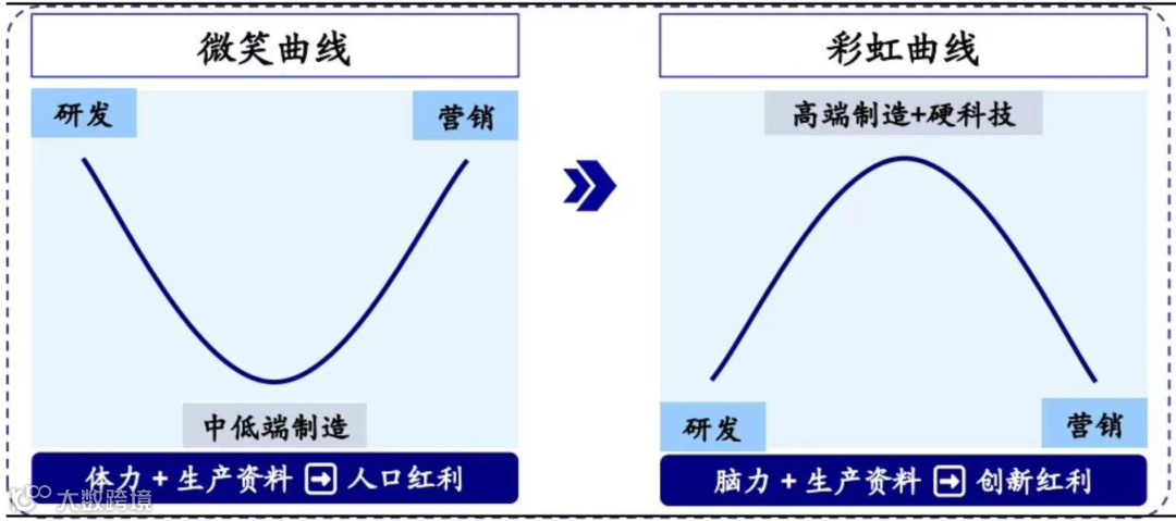 硬科技制造即“硬科技”+“高端制造”。2021年12月,国家发改委对硬科技代表性领域进行界定,主要包括光电芯片、人工智能、航空航天、生物技术、信息技术、新材料、新能源、智能制造等领域,而这些关键核心技术所赋能的高附加值制造行业即为硬科技制造领域。在中国加速发展新质生产力的背景下,硬科技制造作为其中的关键领域,正引领新一轮产业升级,重构全球价值链中制造环节的创新功能、增值能力和要素投入,进而提高制造环节在全球价值链中的地位,从“微笑曲线”迈向“彩虹曲线”。