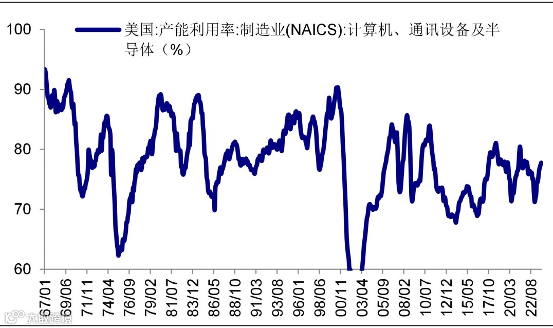 另一方面,人工智能产业正处在向上周期中,有望推动半导体产业开启向上弹性更大的周期。历史上科技产业技术的革新和突破往往带来上下游产业开启向上弹性更大的周期,例如上世纪90年代互联网+台式机应用推动科技产业蓬勃发展,同时也带动半导体产业经历两轮向上弹性较大的小周期,期间年化复合增速达到15%。因此,借鉴历史经验看,以ChatGPT为标志的人工智能2.0时代将对关键半导体元件带来更高需求,同时人工智能加快落地应用,或带来智能终端需求的增长,进一步推动半导体周期向上。