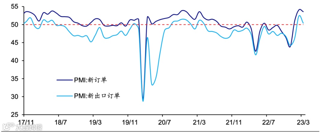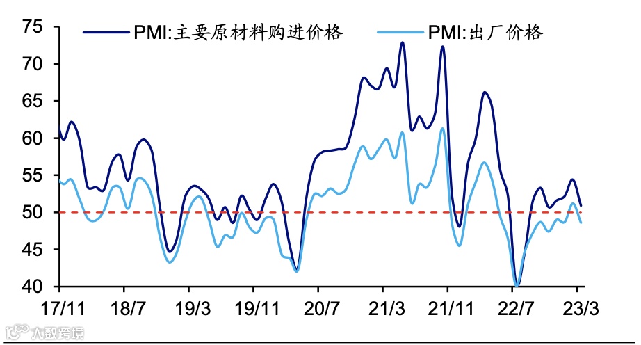 出口或仍面临下行压力。3月新出口订单指数相比上月有所回落,降幅高于内需。我们认为,前期出口的韧性或与积压订单的集中释放有关,目前欧洲需求仍然降温,出口或仍面临下行压力。