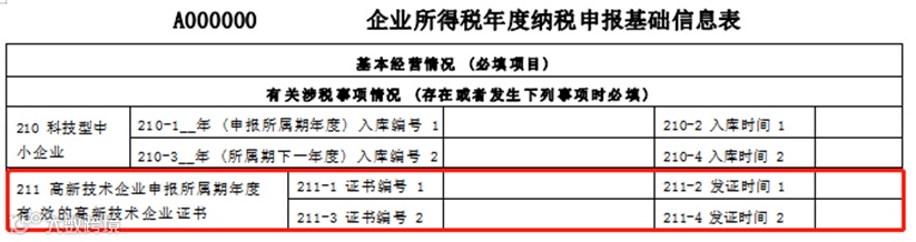 准确填写基础信息表!高新技术企业应将相关信息在A000000企业所得税年度纳税申报基础信息表对应栏次内准确填报,以免影响政策享受。