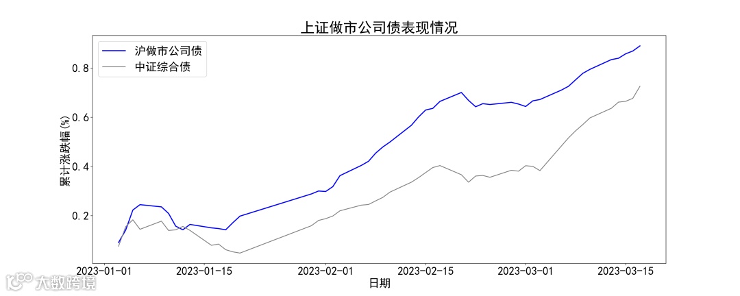 图3:年初至今沪做市公司债指数vs.中证综合债指数(%)