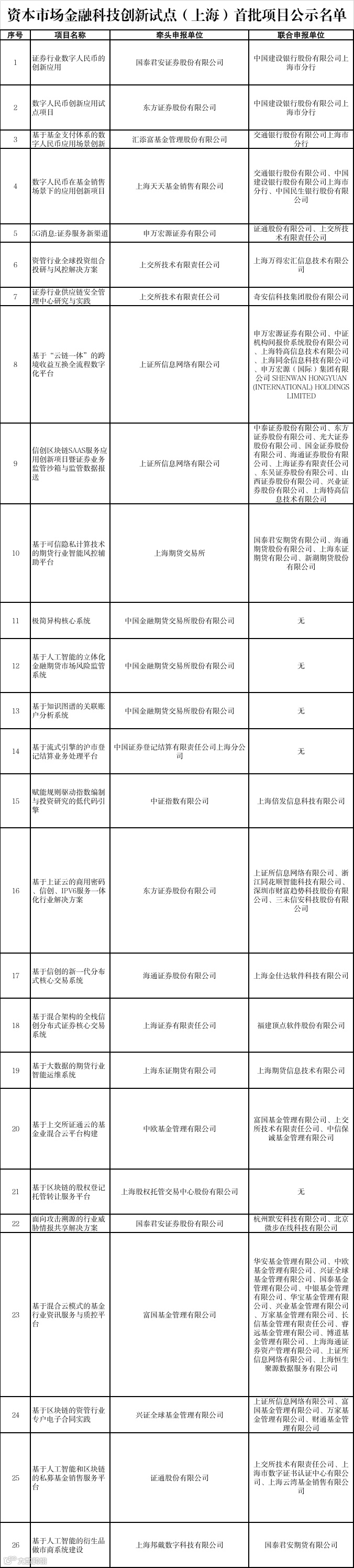 个申报项目已通过项目征集、遴选评审、专业评估等环节,纳入本市首批资本市场金融科技创新试点,其中上海股交中心研发的“基于区块链的股权登记托管转让