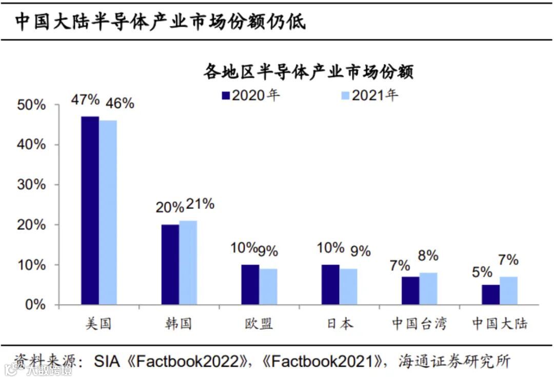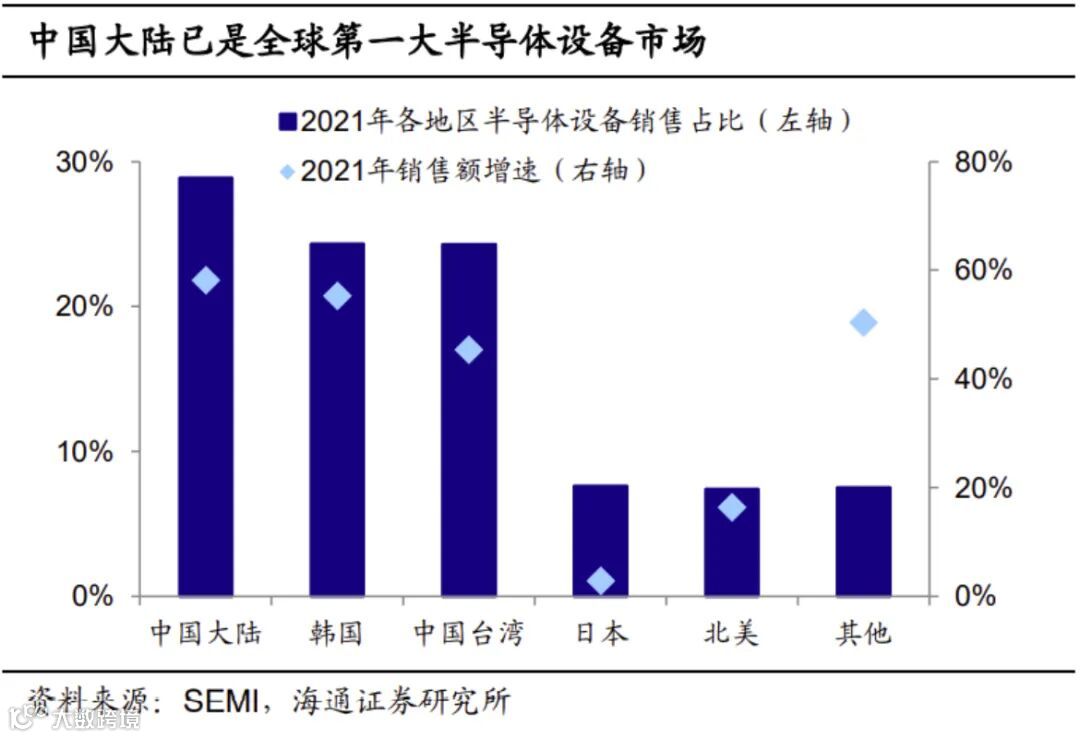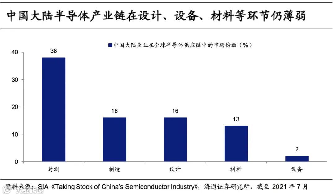 中国大陆已是第一大半导体消费市场,但材料、设备、设计等环节尚未自主可控。从半导体产业链来看,我国在中游的封测具备一定优势,制造环节也正取得突破,但在技术壁垒较高的核心技术环节尚未实现自主可控,如上游的设备和材料我国进口依赖度仍高,设计环节也比较薄弱。半导体是信息技术时代诸多前沿技术的基础,在地缘政治不确定性加大的影响下,半导体产业链本土化趋势将成为新常态,相关领域国产替代将提速。