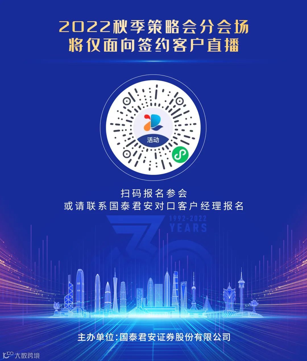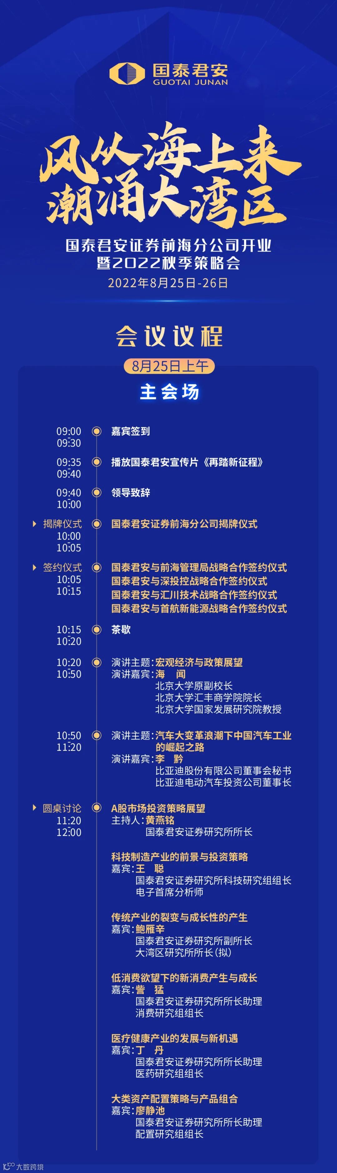 8月25日-26日,“风从海上来,潮涌大湾区”——国泰君安证券前海分公司开业暨2022秋季策略会将于深圳盛大举行。