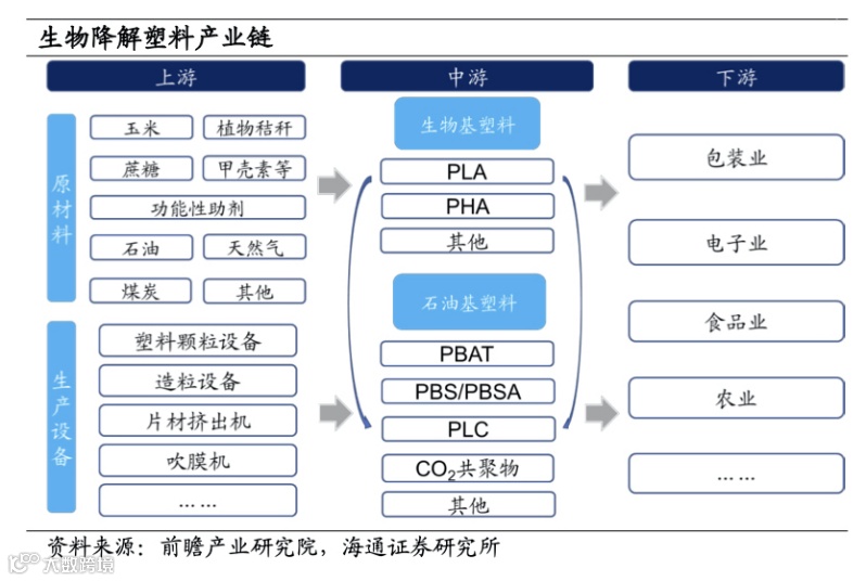 传统制造业可以通过采用新型环保材料实现产品源头上的减碳。制造业是我国碳排放的主要源头之一,尤其是传统制造业的能耗通常较高。因此为了实现碳中和目标,制造业需要进行绿色化改造,重要途径之一就是从源头上采用环保材料。2021年7月,国家发改委印发《“十四五”循环经济发展规划》,重点任务之一就是推行重点产品绿色设计。因此,预计可降解塑料行业未来发展空间广阔,其产业链各环节也有望迎来机遇,目前A股在可降解塑料研发及生产领域的相关公司包括金丹科技、恒力石化等。
