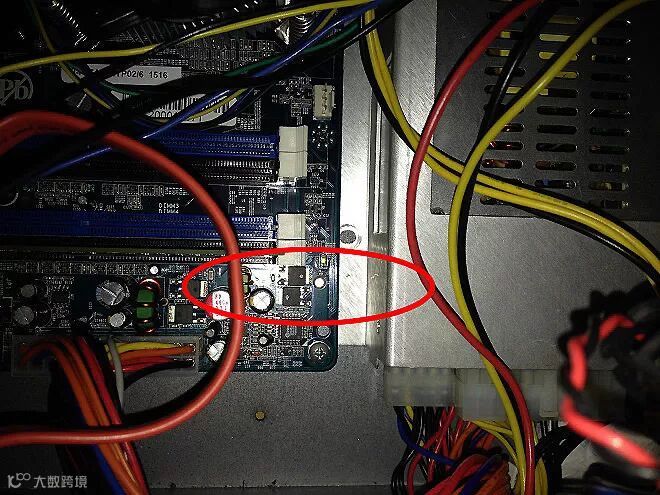 6. 若开关电源正常,请检查轴卡上的插头J7是否紧固,若有松动或没有插在轴卡上,请紧固,注意:开机时,电源线要在轴卡上J7 3,4脚获得一组闭合信号,进而在J9上的4,5脚闭合启动线,才能正常启动,如果轴卡上无闭合信号的输出,说明轴卡损坏了。