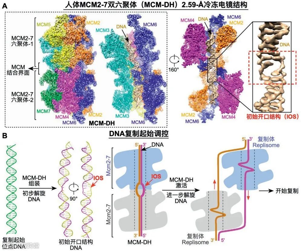 人体MCM2-7双六聚体(MCM-DH)冷冻电镜结构及DNA复制起始调控步骤