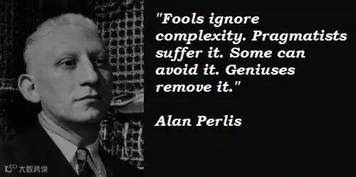 Fools ignore complexity. Pragmatists suffer it. Some can avoid it. Geniuses remove it. -