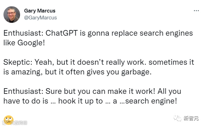 提到ChatGPT能否取代谷歌,向来看热闹不嫌事大的马库斯肯定少不了冷嘲热讽两句。