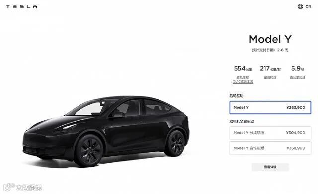 Model Y全系涨价5000元,起售价涨至26.39万元。
