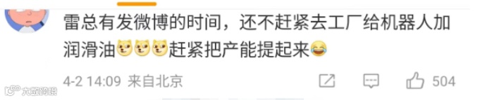4月2日,小米集团CEO雷军微博发文称: