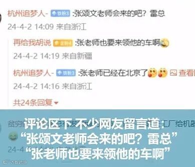 “张颂文老师会来的吧?雷总”“张老师也要来领他的车啊。”
