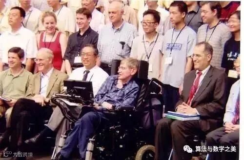 2002年北京国际弦论会议:前排左起斯特罗明格,格罗斯,丘成桐,霍金,威滕