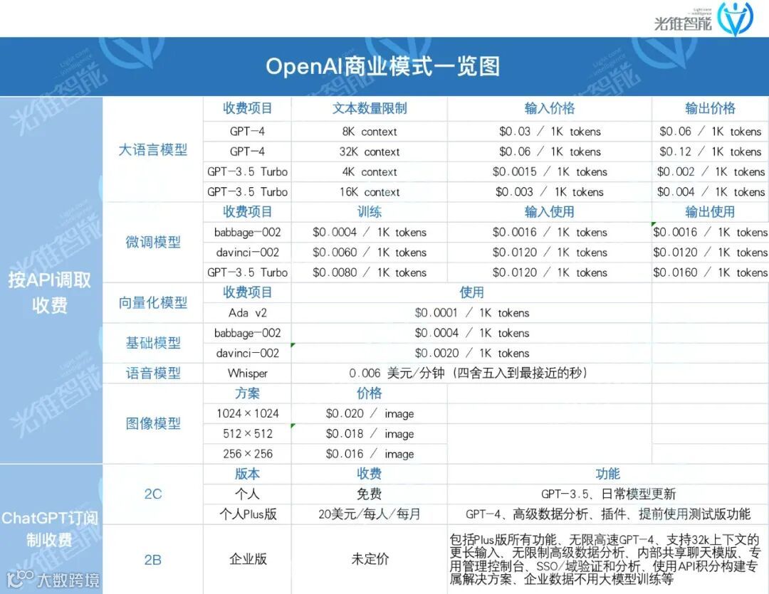 以此观之,OpenAI正在试图从以前低收费、低频率的按Token收费的API模式,转向高定价、高粘性的2B订阅收费和定制化解决方案收费的多样化收费模式。