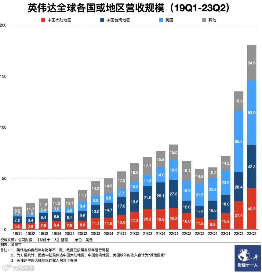 英伟达三季度财报显示,来自中国大陆地区(包含香港)的收入为40.3亿美元,占比22.4%。