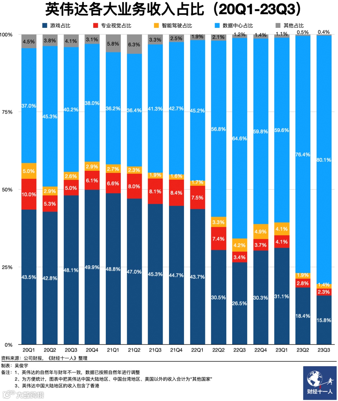 英伟达在财报中称,英伟达数据中心收入,中国大陆市场过去几个季度的占比一直约为20%-25%。