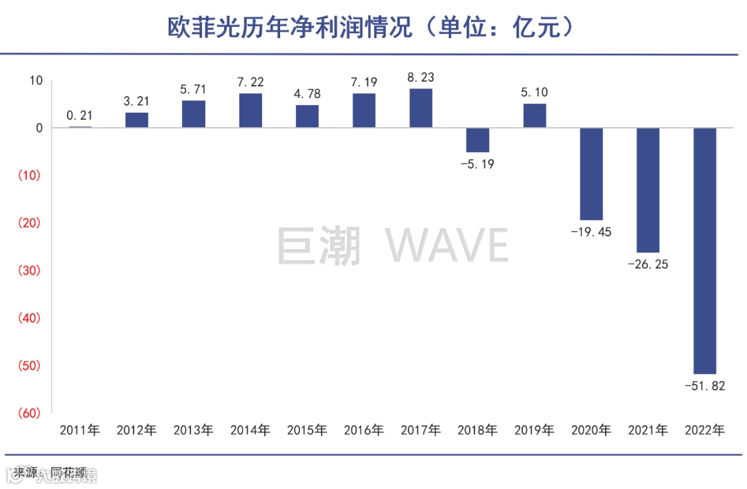 以欧菲光为例,被苹果剔除供应链名单后,2020-2022年三年时间里,就亏损超97亿元,加上今年上半年的亏损,合计失血超百亿。