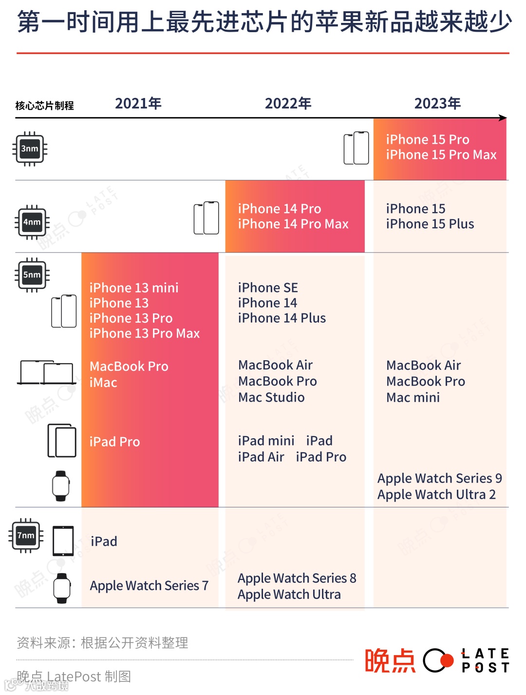 只有 Apple Watch 还留在 2018 年量产的 7 纳米工艺。