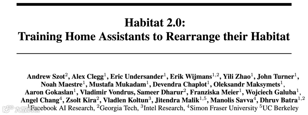 《Habitat 2.0: Training Home Assistants to Rearrange their Habitat》的作者最多,有21个。