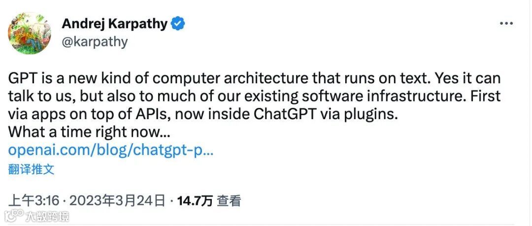 刚刚回归OpenAI不久的特斯拉前AI主管Andrej Karpathy则表示:
