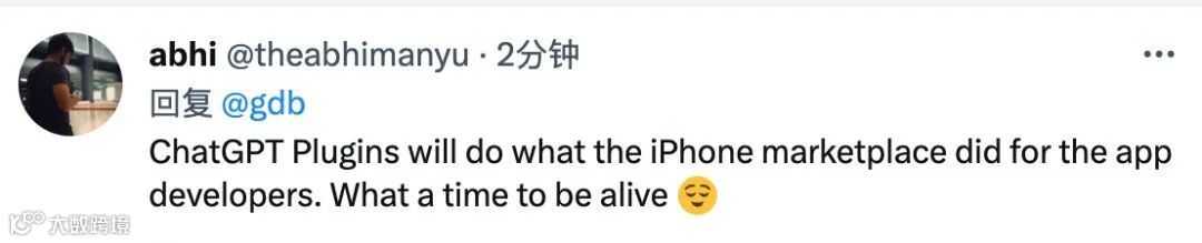 对于ChatGPT新推出插件功能,有开发者表示这基本提供了苹果应用商店式的服务。