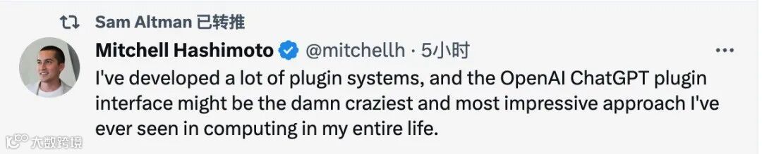 “我为许多软件开发过插件系统,ChatGPT插件接口可能是我一生中见过的最疯狂、最令人印象深刻的。”