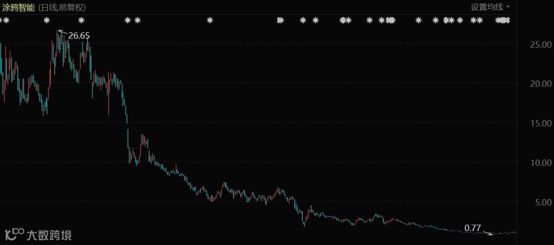 但高光时刻并未持续多久,随后涂鸦智能的股价几乎是“一泻千里”。