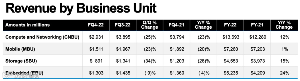 可以看出,除了博通没太受到宏观经济环境的影响外,其余几家芯片设计巨头们均没能从萎靡不振的消费电子市场中幸免于难。