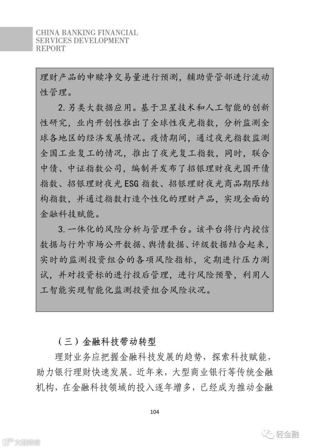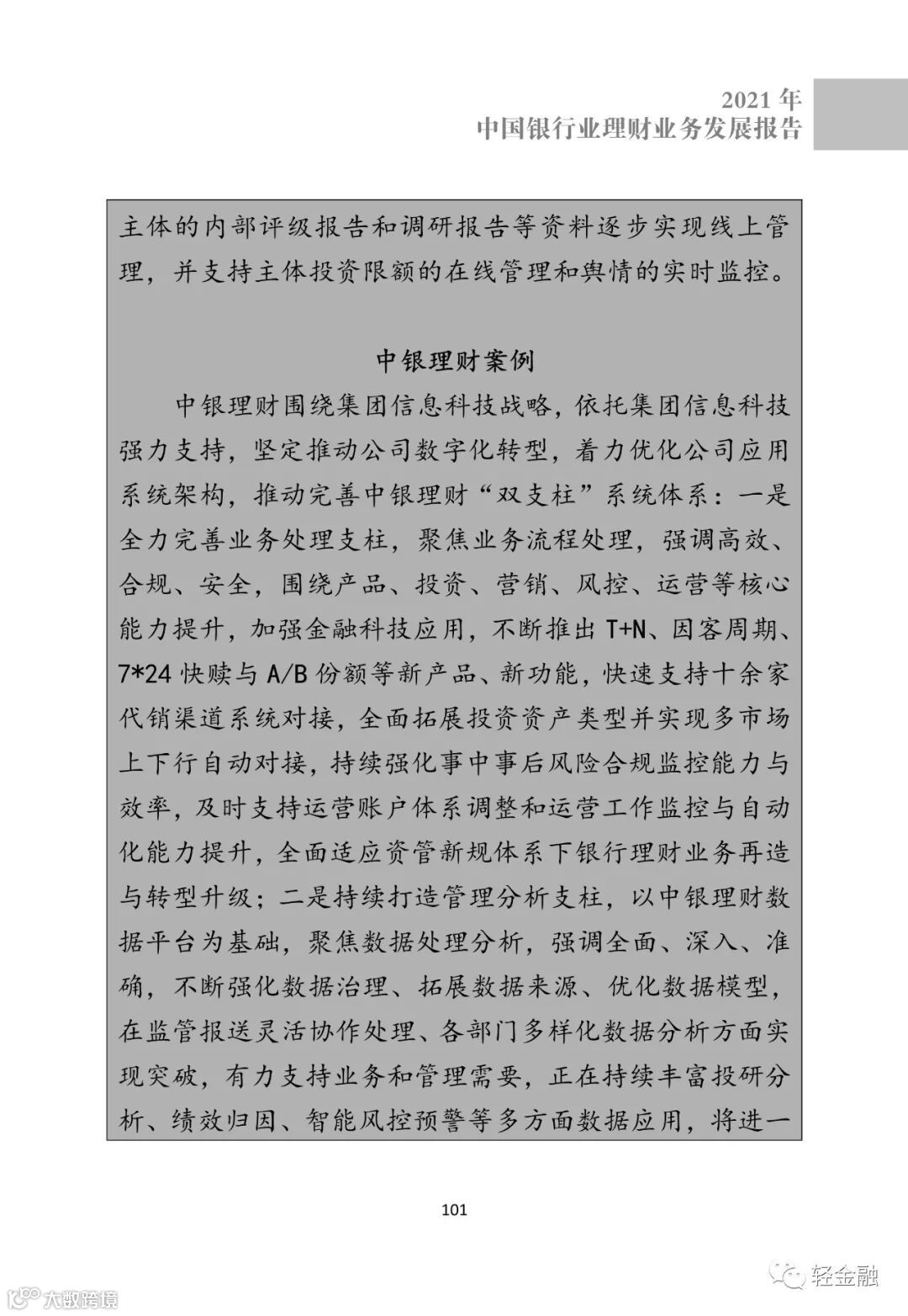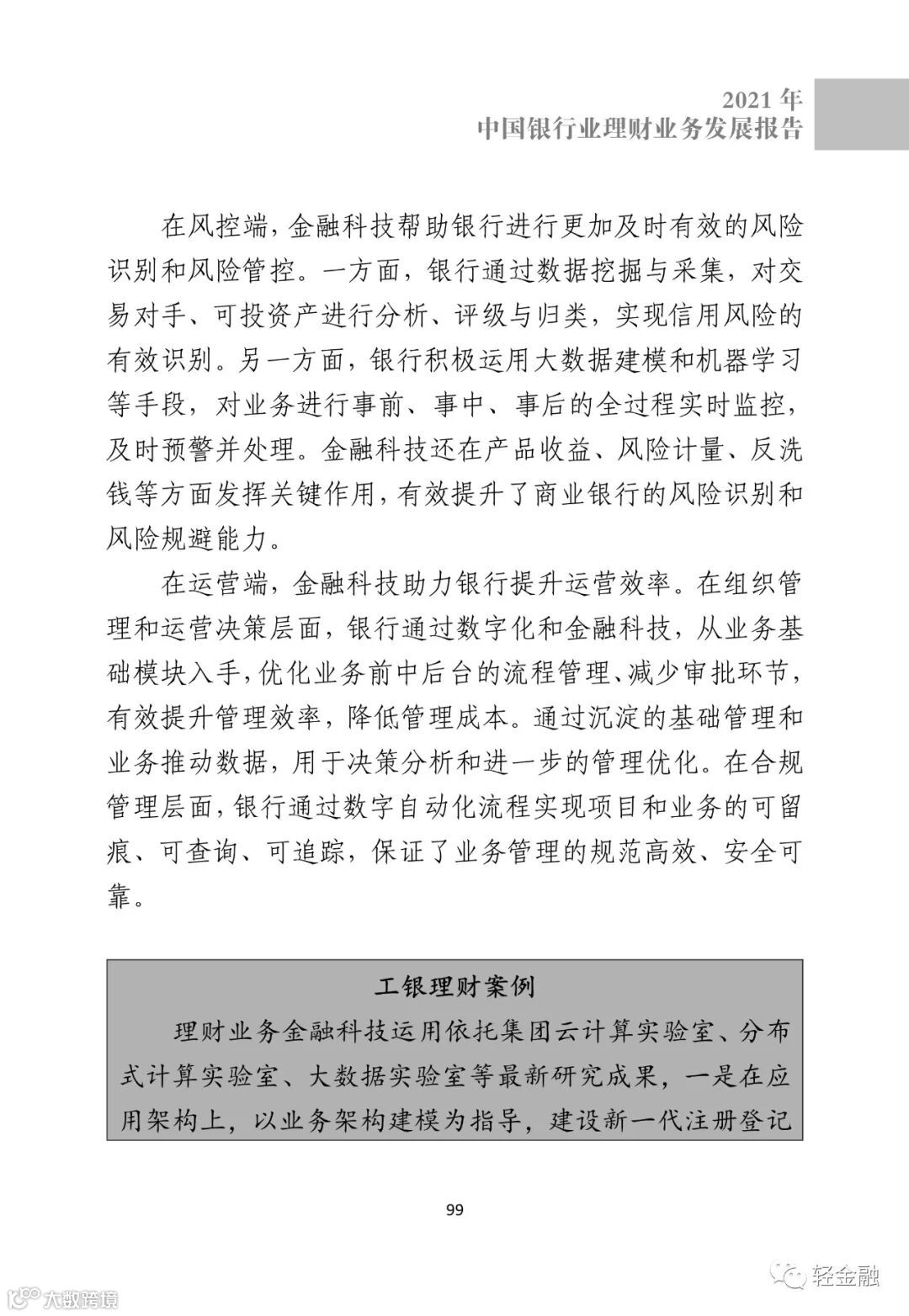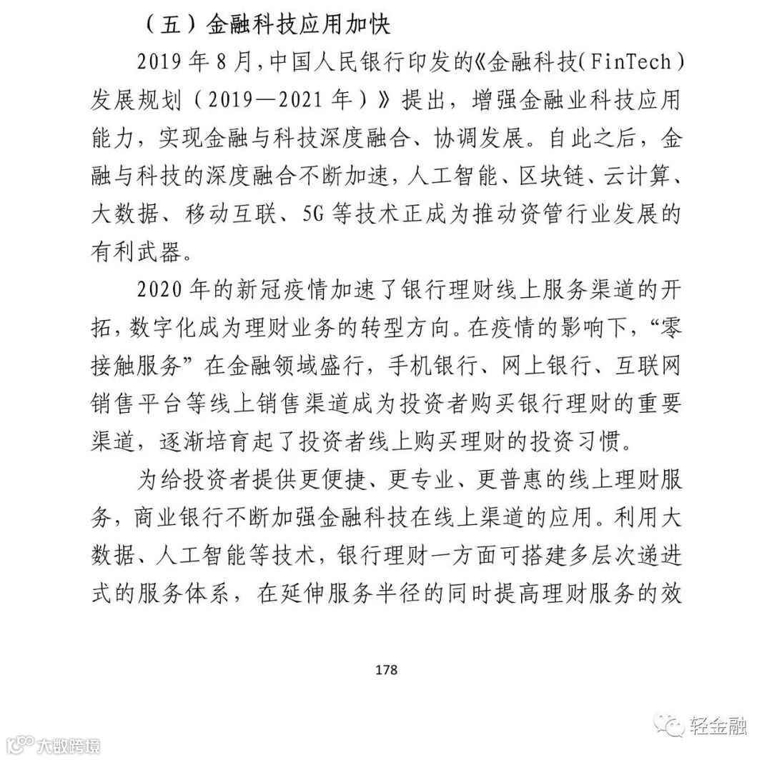 今日,中国银行业协会发布《2021中国银行业理财业务发展报告》,轻金融重点摘录了其中金融科技相关的内容。