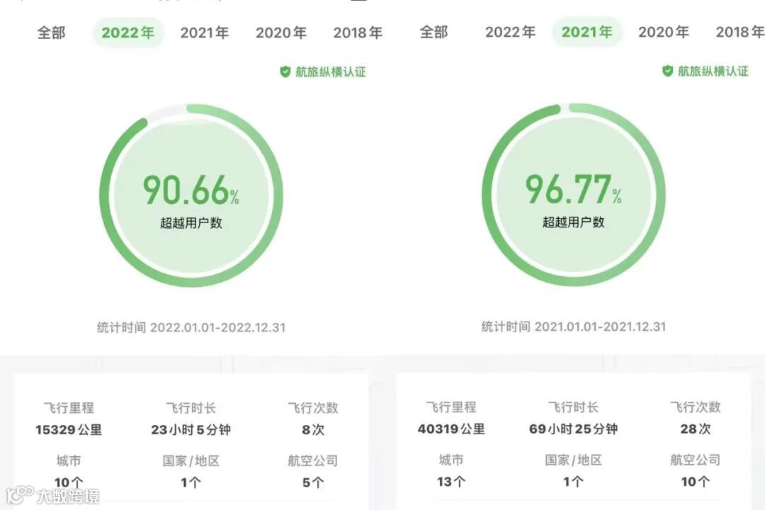到了2022年,飞行次数屈指可数,里程也直接缩水了将近3/4。