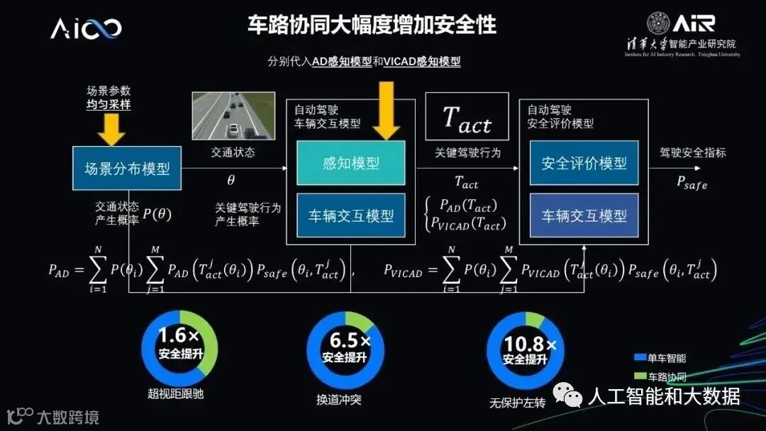 我们做的物理模型和数学模型也显示,车和路协同能够大幅度提高安全性。在超距离跟车、换道、左转这三个不同场景中,都可以看到路、灯的信息大幅度提高了车的安全程度。