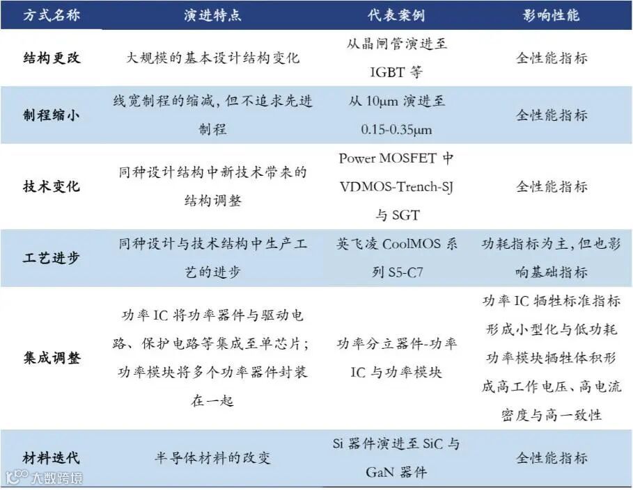 与逻辑电路和存储芯片相反,工艺节点的进步并不能直接为分立器件、模拟电路等带来效率显著提升和成本显著下降,而是需要通过器件结构、加工工艺、应用环境提升器件价值和性能。