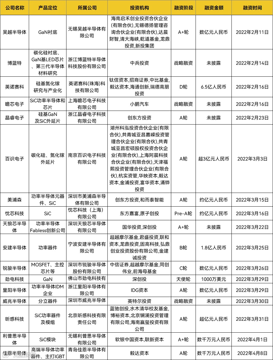 2022年Q1功率半导体相关融资公司,制表丨果壳硬科技团队