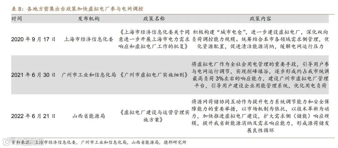 此外,北京/上海等多地的十四五规划中也都点名提到发展和建设虚拟电厂。