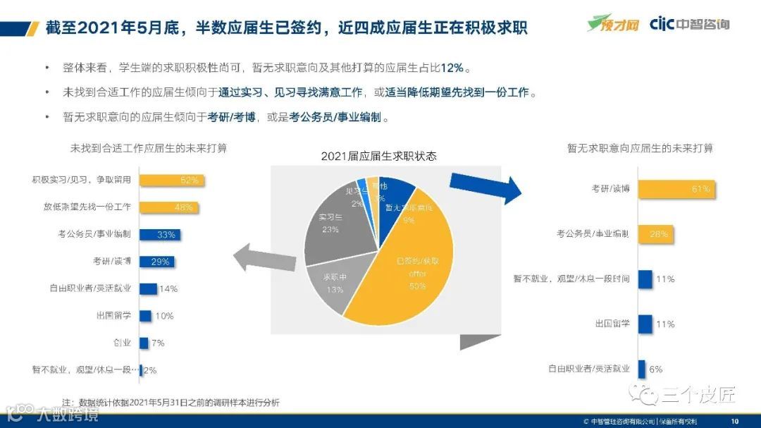 应届生就业的挑战与建议:应届生期望过高、企业薪酬缺乏竞争力是高校生招聘主要挑战。应届生主动离职率、毁约率相比疫情期间大幅反弹,人才流动更为活跃。应届生求职的关注因素和企业的吸引因素匹配错位企业应关注应届生求职体验,拓展招聘渠道、优化招聘流程。