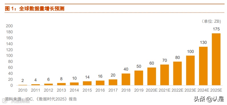 数据资产化旨在最大化释放数据的核心价值以及流通性。中国 2018年产生了7.6ZB的数据。预计中国的 “数据圈”将会扩张14倍左右, 以每年30%的平均增速快速发展,在2025年达到 48.6ZB,也就是48.6万亿GB。中国将成为全球第一。坐拥如此庞大的体量以及未来的潜力,社会各界谁能率先认识到数据的重要性、对丰富的数据资源加以合理运用, 谁就能迅速把握时代风口、抢占行业先机,并创造惊 人的经济利益。