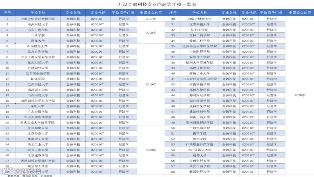 作为高中毕业生进入大学前的最后一道考验,填报志愿也需谨慎对待。而在当前的金融领域,最受关注的专业莫过于“金融科技”。作为近年来的行业新宠,自2018年以来,共计58所高校开设了这一新兴专业,传统金融机构、互联网巨头入场,金融科技领域的“人才争夺大战”已经打响。