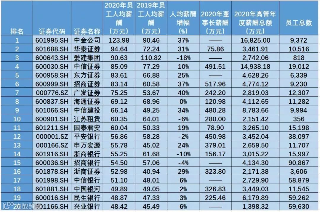 2020年,各大券商董监高薪酬支出不菲。年报显示,中金公司现任的董监高中,共有6人年薪超过千万,2020年公司合计为董监高发放薪酬1.68亿元。其中,首席执行官黄朝晖年薪为1598.2万元;首席运营官楚钢年薪为1546.1万元;管理委员会成员黄海洲(股票业务部负责人)年薪1930.7万元;管理委员会成员吴波(财富管理部负责人)年薪1145.7万元;总裁助理王晟(投资银行部负责人)年薪1860.3万元;董秘徐翌成年薪1010.1万元。